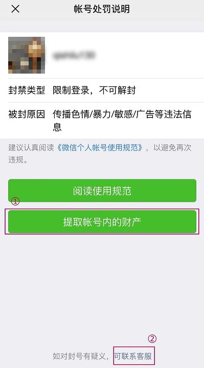 注:如对封号有疑义,点击下方”联系客服“,可找到人工客服进行复审核实。